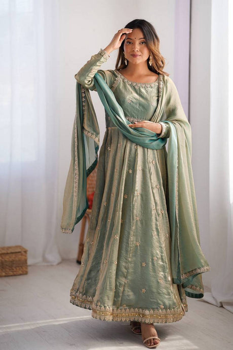 Olive Green Sequin with Embroidered Silk Anarkali Suits