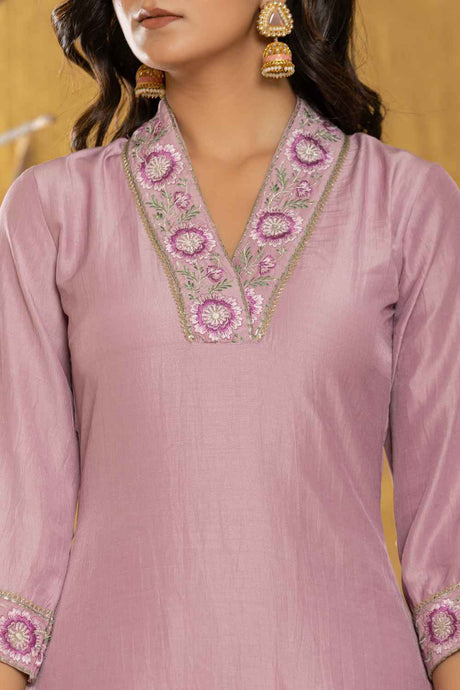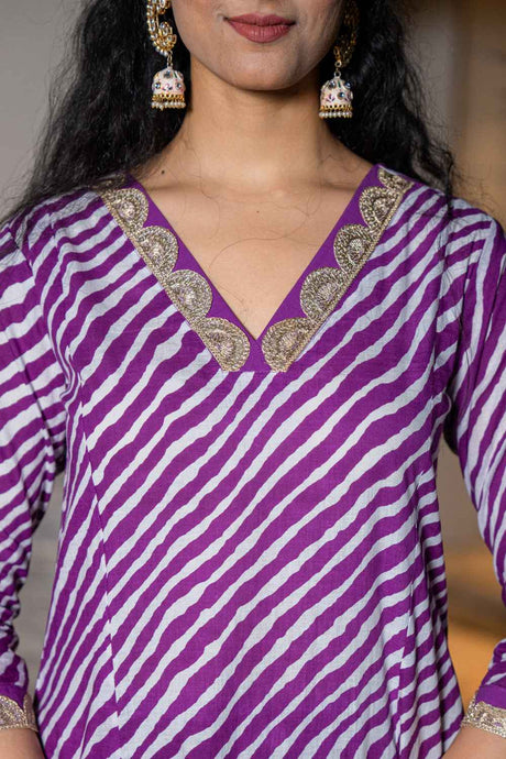 Violet Ethnic Motifs Pure Cotton Kurti Pant Set