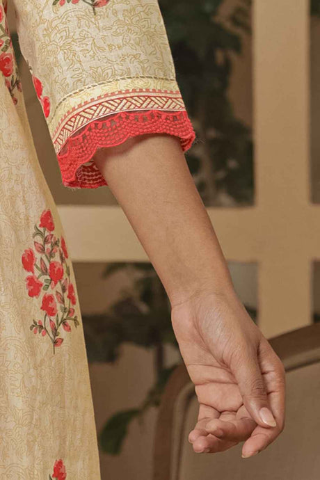 Violet Leheriya Lace Work Pure Cotton Kurti Pant Set