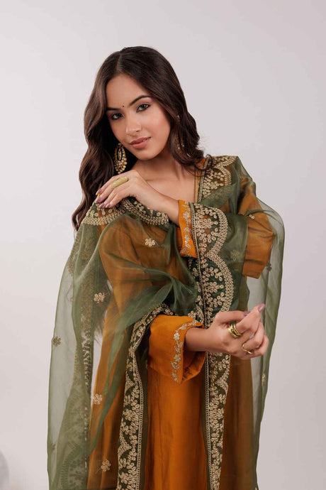 Orange Leheriya Lace Work Pure Cotton Kurti Pant Set