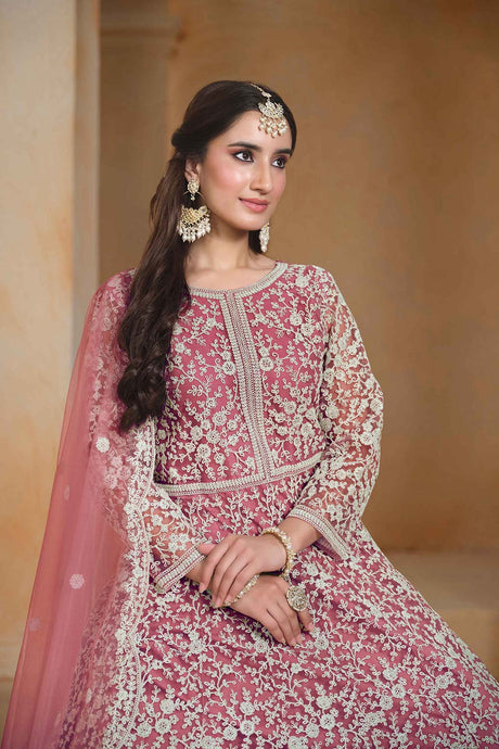 Pink Net Embroidered Anarkali Suit Set
