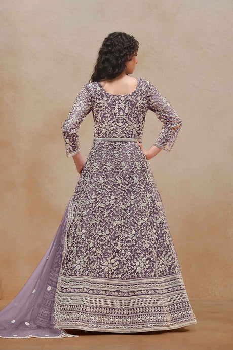 Purple Net Embroidered Anarkali Suit Set