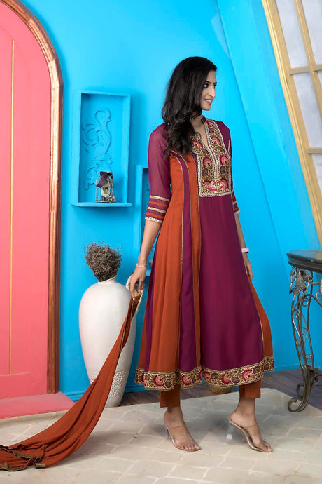 Magenta Georgette Stitched Anarkali Trouser Kurti Dupatta Readymade Suits