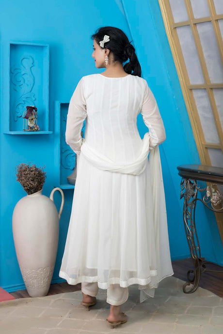 Off White Georgette Stitched Anarkali Trouser Kurti Dupatta Readymade Suits