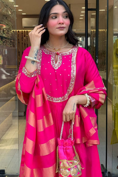 Pink Sequin with Embroidered Chanderi Anarkali Suits