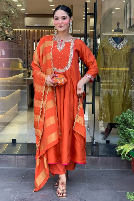 Orange Sequin with Embroidered Chanderi Anarkali Suits