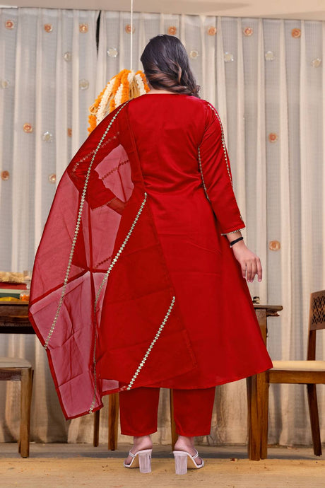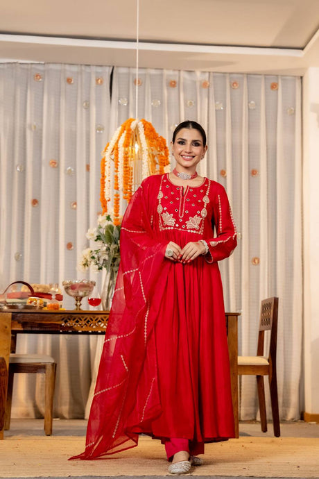 Red Sequin with Embroidered Chanderi Anarkali Suits