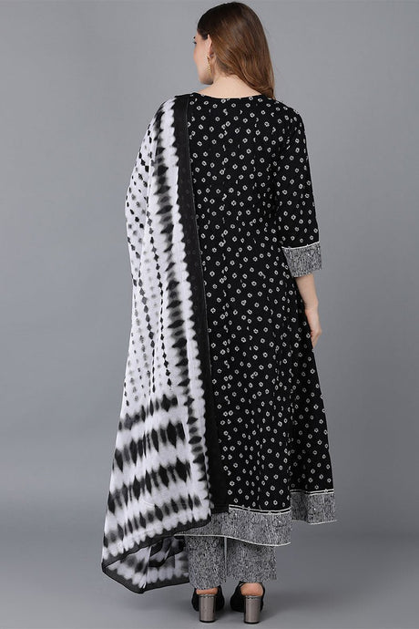 Black Cotton Anarkali Suit Set
