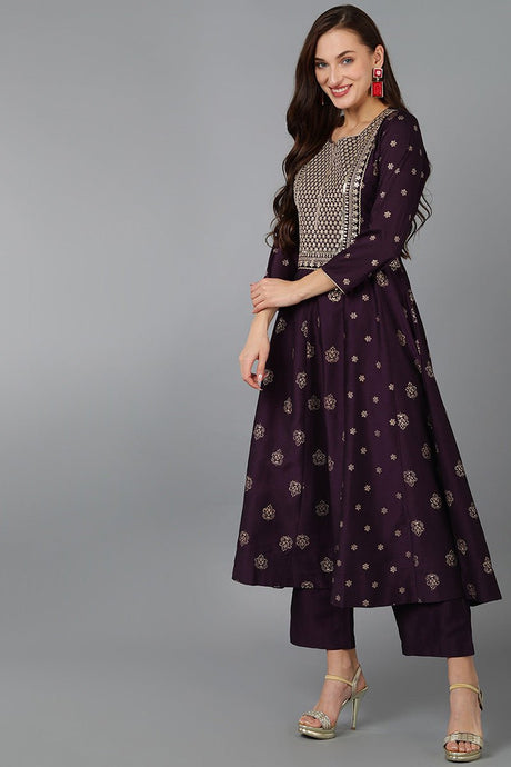Purple Silk Blend Woven Design Anarkali Suit Set