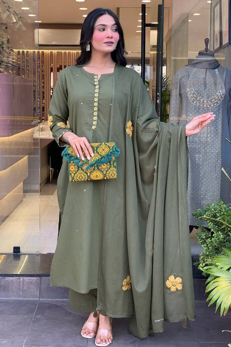 Regular price $1,040.00 USDUnit price /UnavailableGreen Floral Embroidered Viscose Kurti Pant Set