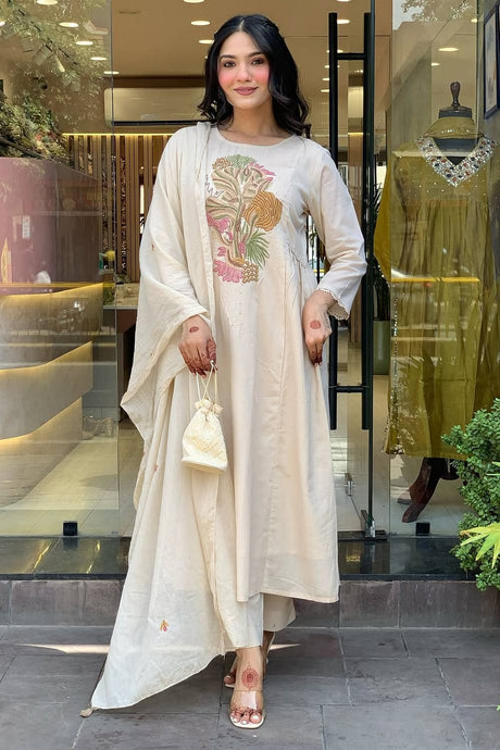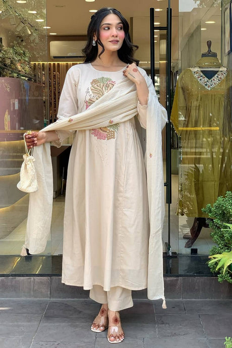 Regular price $940.00 USDUnit price /UnavailableCream Floral Printed Rayon Straight Cut Suit Set