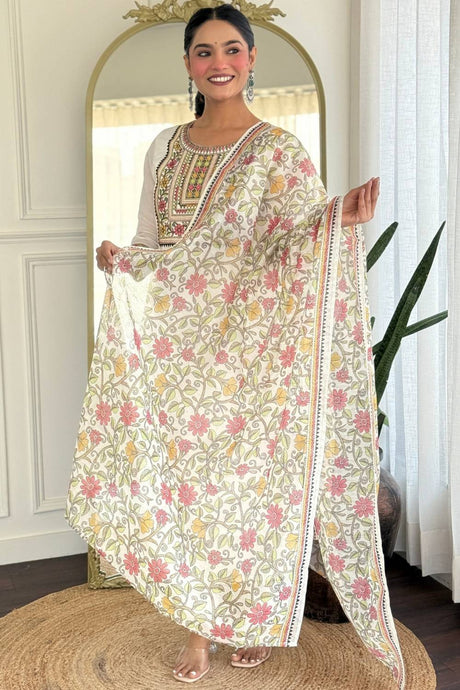 Regular price $1,040.00 USDUnit price /UnavailableCream Floral Printed Rayon Straight Cut Suit Set