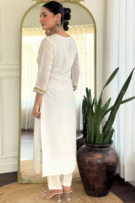 Regular price $1,120.00 USDUnit price /UnavailableWhite Embroidered Rayon Anarkali Suit Set