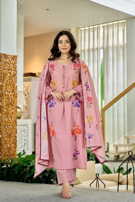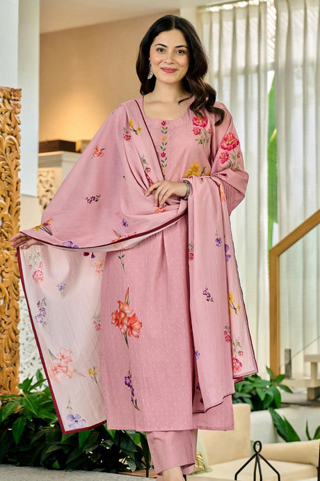 Pink Floral Embroidered Art Silk Straight Cut Suit (Vega Vinay Anmol - 77192)