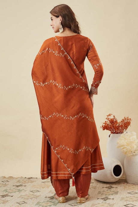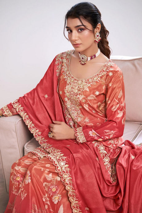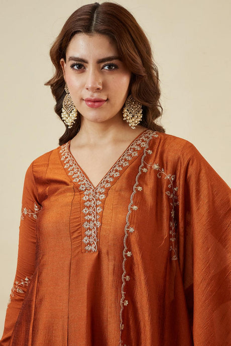 Orange Embroidered Chinon Palazzo Suit (ACA6801)