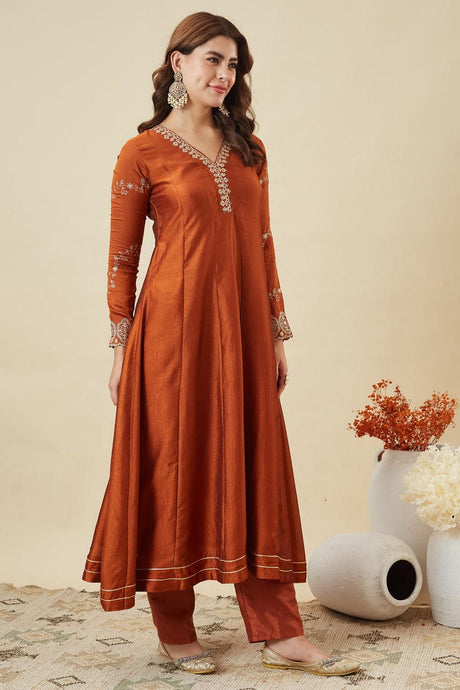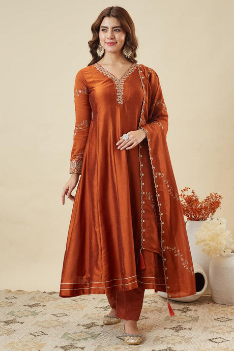Orange Floral Embroidered Silk Anarkali Suits (ACA6866)