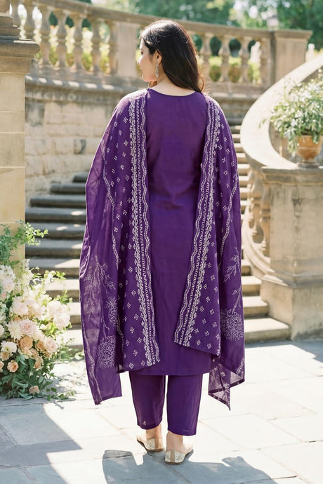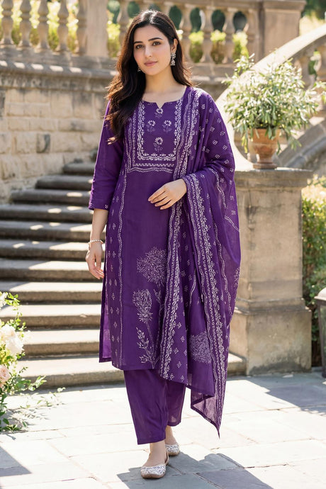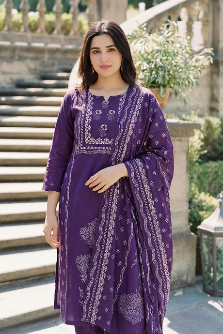 Violet Floral Printed Muslin Kurti Pant Set (ACA6869)