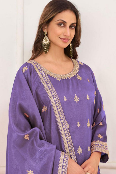 Lavender Floral Embroidered Art Silk Palazzo Suit (Vega Radha Zeel - 5041)