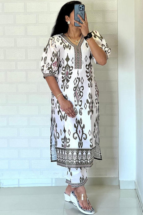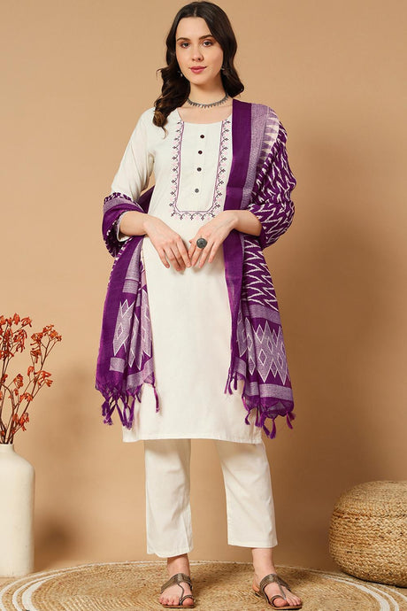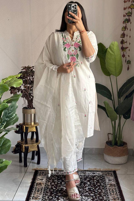 White Floral Embroidered Khadi Straight Cut Suit (VT-2503)