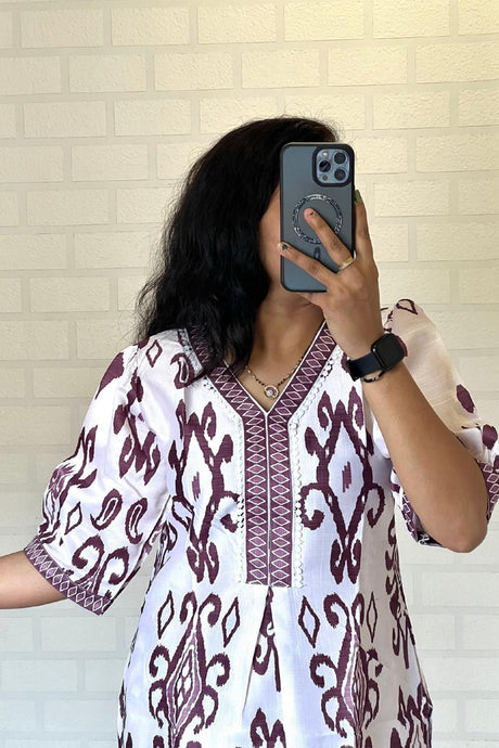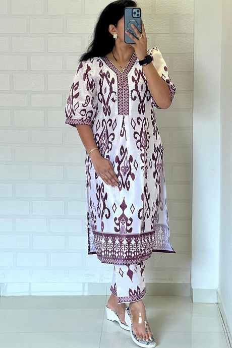 Brown Floral Embroidered Cotton Kurti Palazzo Set (WM27-BROWN)