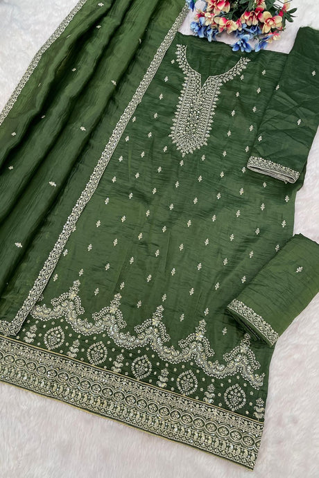 Turquoise Floral Embroidered Chinon Palazzo Suits (Blouse Semi-Stiched)