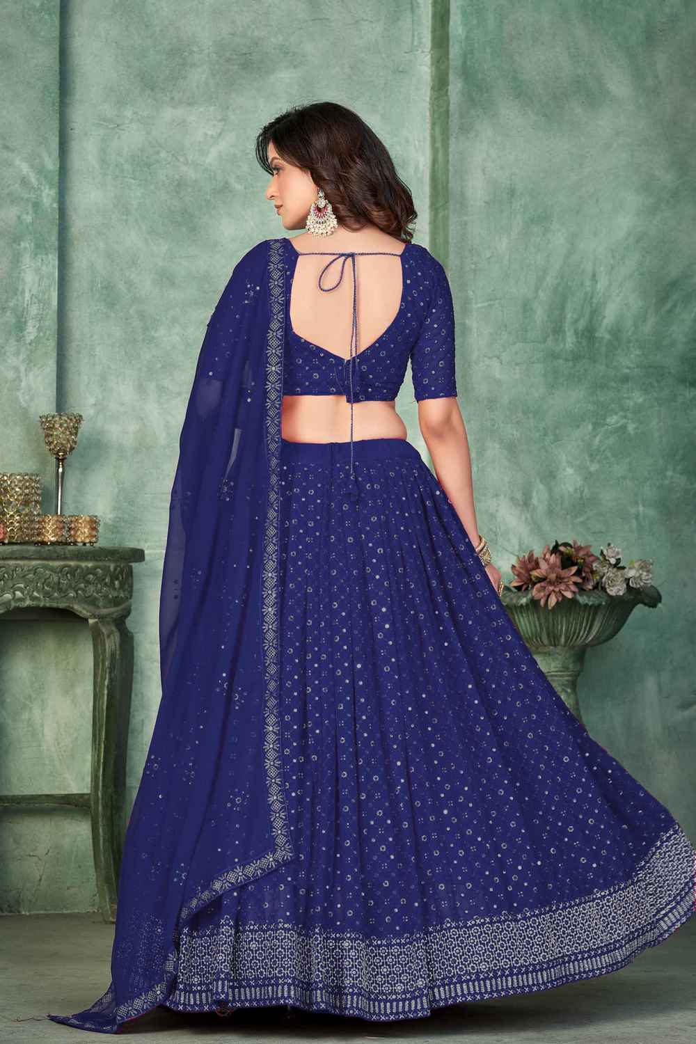 Navy Blue Sequin with Embroidered Georgette Lehenga