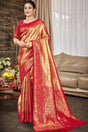 Elevate your wardrobe with our exquisite Saree a masterpiece crafted to add timeless elegance to your style. Made from Kanjivaram Silk this saree offers a perfect mix of comfort and sophistication. Adorned with Woven it showcases intricate craftsmanship that speaks volumes of tradition and artistry. Perfect for Sangeet, Festive this saree is a versatile addition to your collection, ensuring you stand out effortlessly. Pair it with elegant Jewelry, for a glamorous look. Add Clutches or Potli Bags and complete the ensemble with Wedges & Heels , making it a perfect choice for any event. Make a statement and embrace the elegance of Saree today