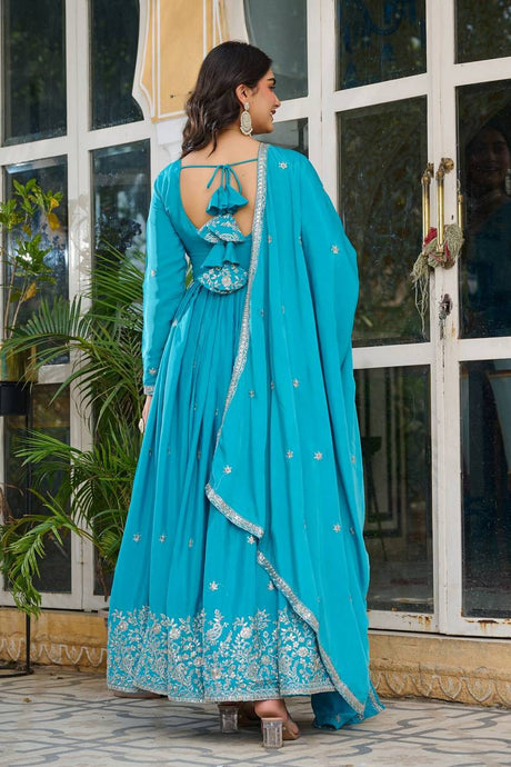 Blue Sequin with Embroidered Silk Anarkali Suits