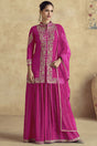 Dark Pink Sequin with Embroidered Art Silk Sharara Suit Set