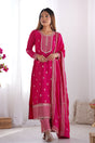 Pink Sequin with Embroidered Chinon Straight Cut Suit Set