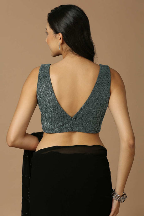 Teal Taffeta Sleeveless Padded Blouse