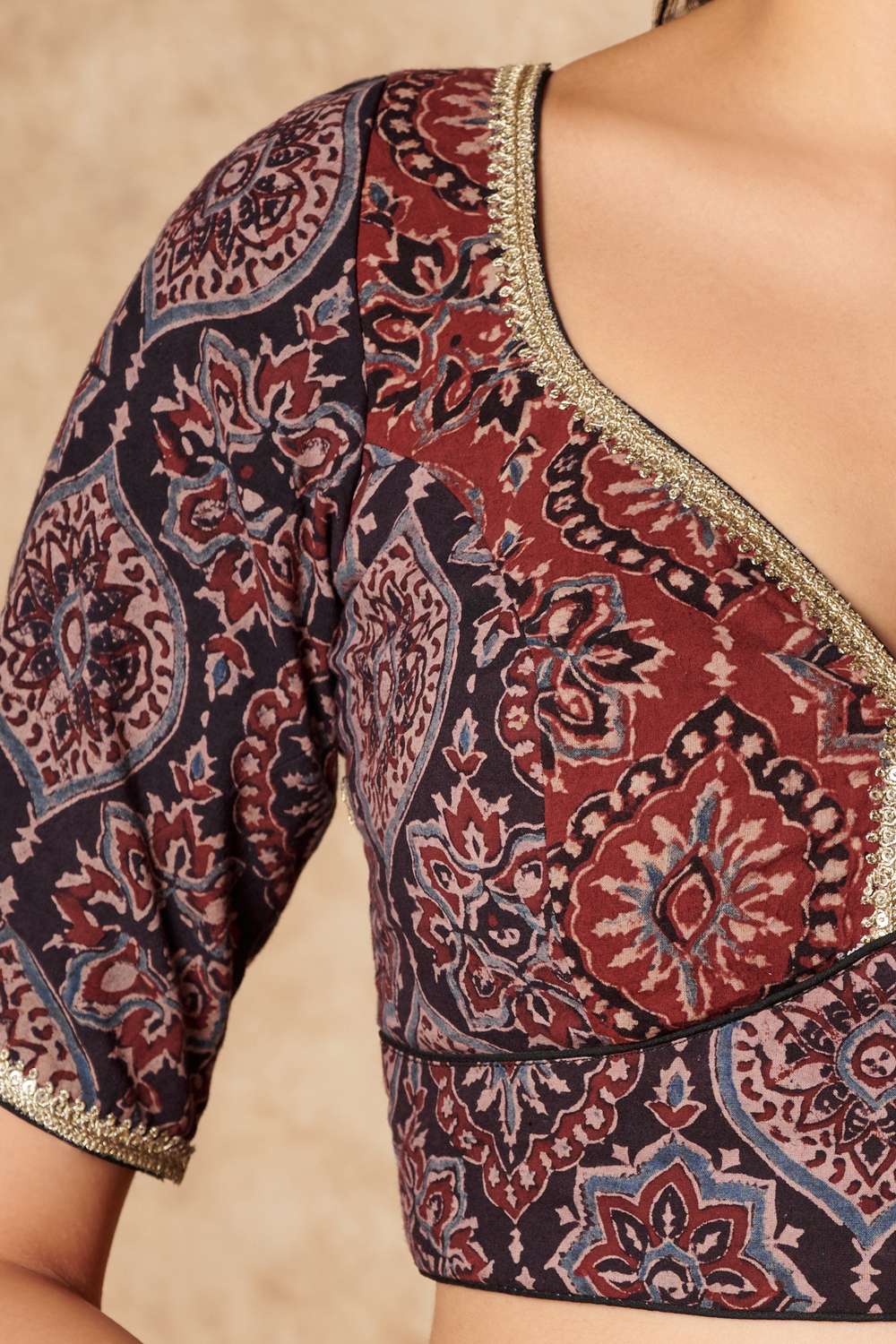 Black Ajrakh Printed Cotton Sweetheart Neck Blouse