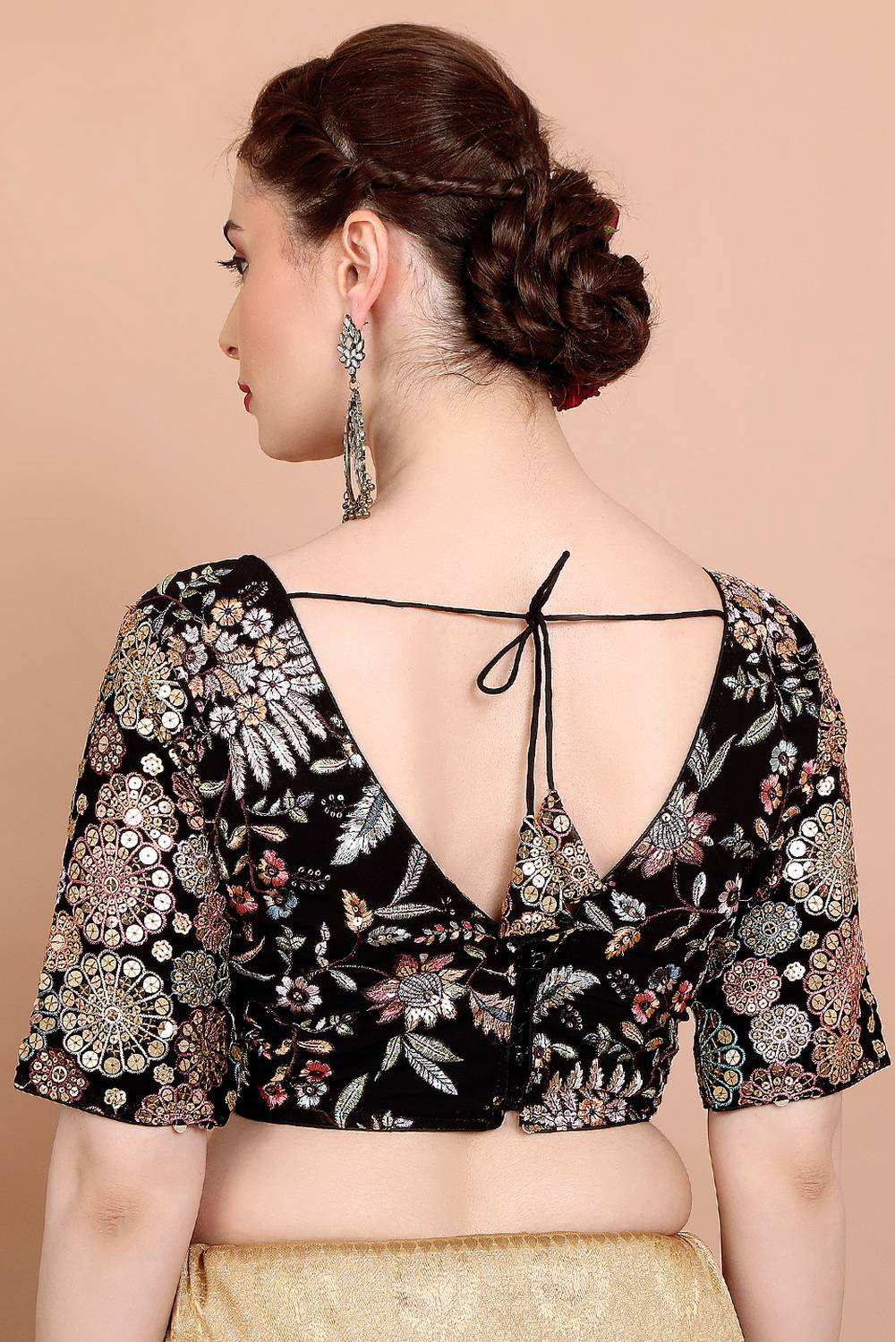 Transform your saree look with our Blouse the ultimate blend of style and comfort. Made from soft and breathable Georgette it ensures a snug yet flexible fit. The intricate Embroidered make this blouse a wardrobe essential. Perfect for Festive it works beautifully with traditional or modern sarees alike. Team it with a silk saree, a bold necklace, and embellished sandals for a sophisticated look. Redefine your saree style with Blouse