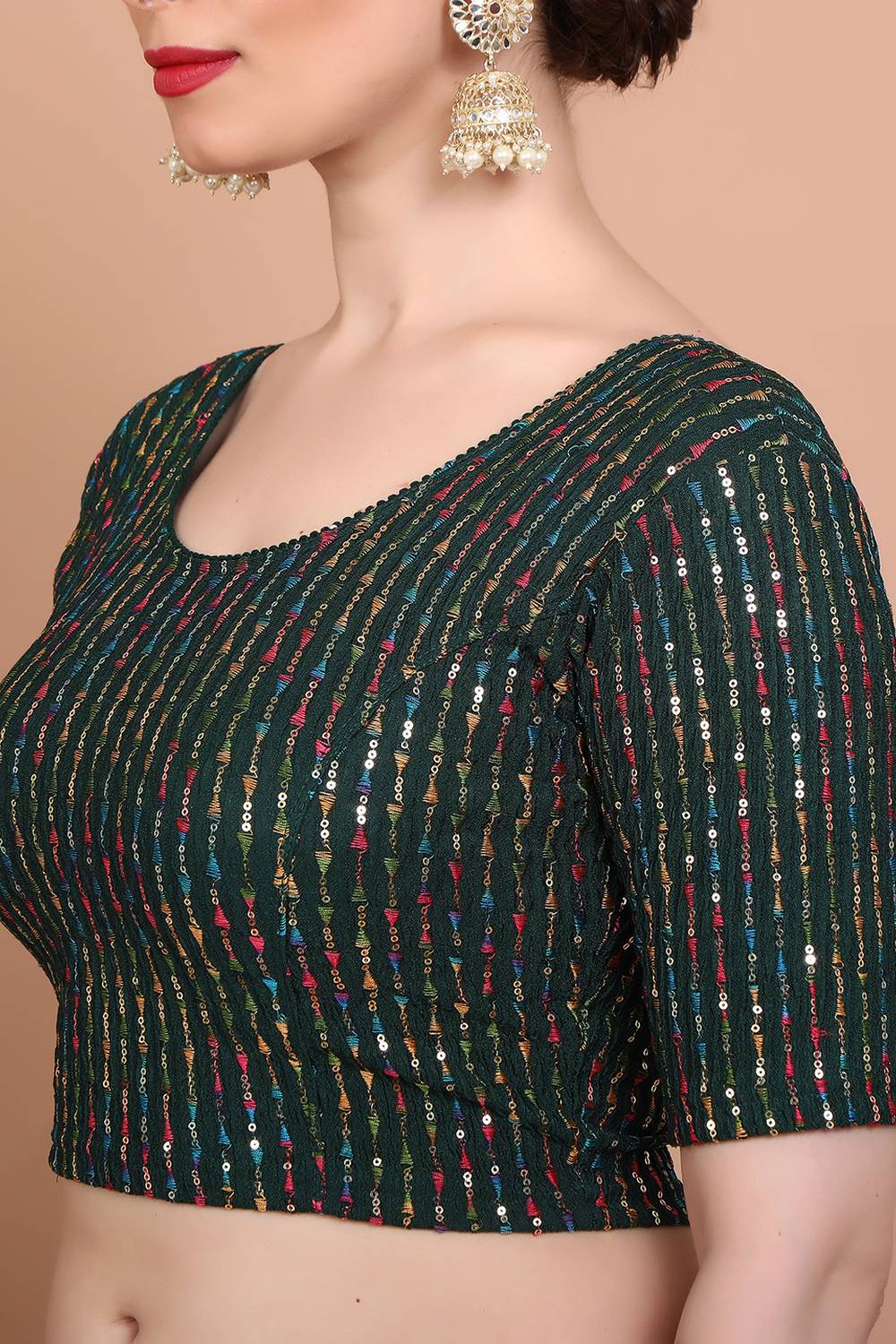 Transform your saree look with our Blouse the ultimate blend of style and comfort. Made from soft and breathable Lycra it ensures a snug yet flexible fit. The intricate Embroidered make this blouse a wardrobe essential. Perfect for Festive it works beautifully with traditional or modern sarees alike. Team it with a silk saree, a bold necklace, and embellished sandals for a sophisticated look. Redefine your saree style with Blouse