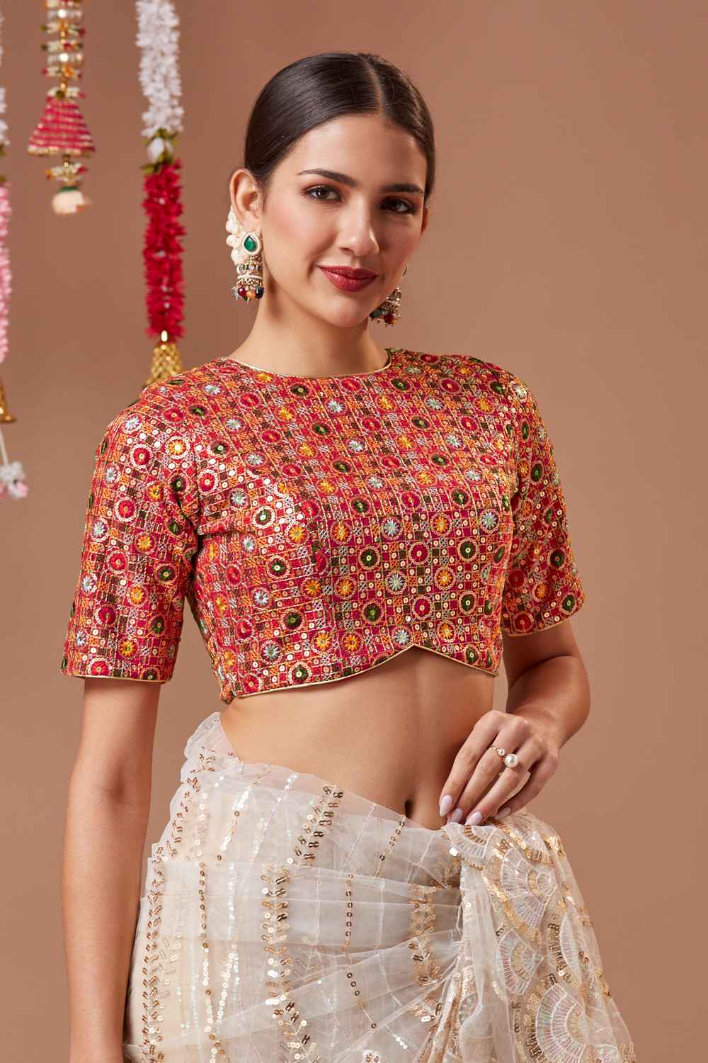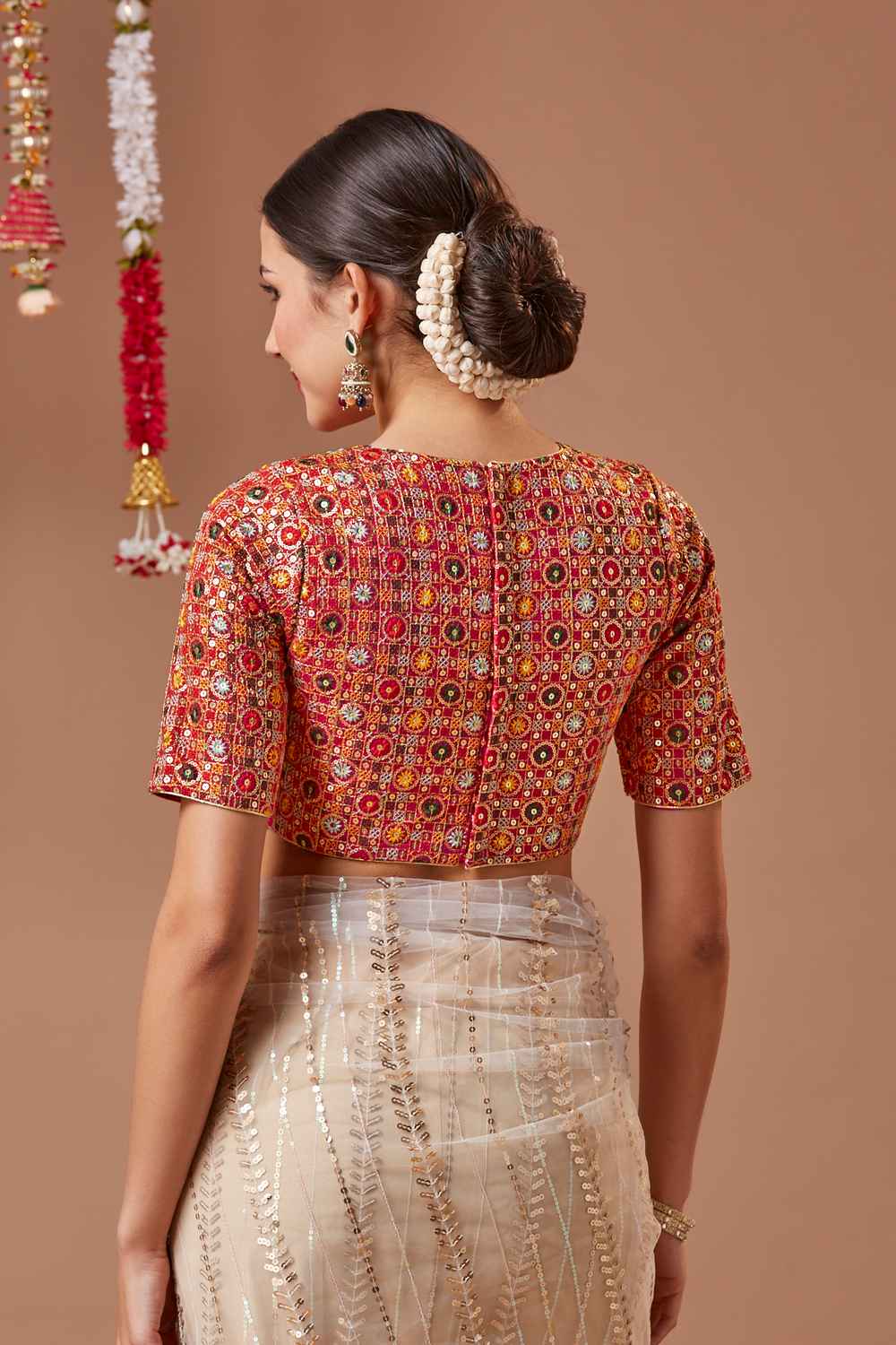 Transform your saree look with our Blouse the ultimate blend of style and comfort. Made from soft and breathable Georgette it ensures a snug yet flexible fit. The intricate Embroidered make this blouse a wardrobe essential. Perfect for Festivewear it works beautifully with traditional or modern sarees alike. Team it with a silk saree, a bold necklace, and embellished sandals for a sophisticated look. Redefine your saree style with Blouse