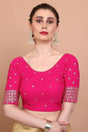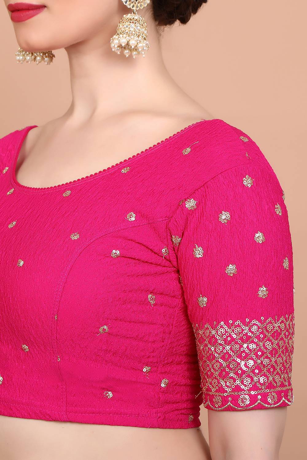 Transform your saree look with our Blouse the ultimate blend of style and comfort. Made from soft and breathable Lycra it ensures a snug yet flexible fit. The intricate Embroidered make this blouse a wardrobe essential. Perfect for Festive it works beautifully with traditional or modern sarees alike. Team it with a silk saree, a bold necklace, and embellished sandals for a sophisticated look. Redefine your saree style with Blouse