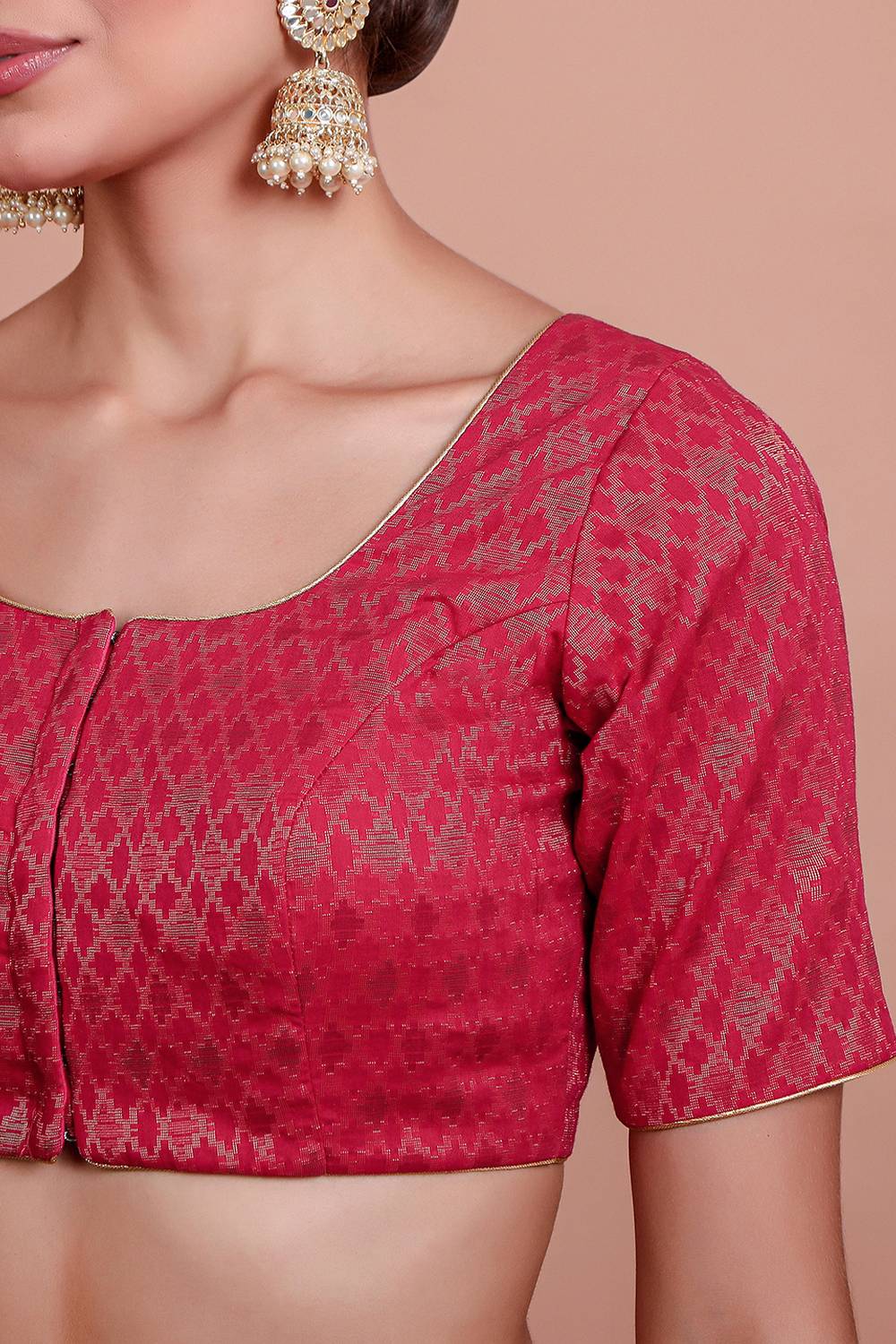 Transform your saree look with our Blouse the ultimate blend of style and comfort. Made from soft and breathable Brocade it ensures a snug yet flexible fit. The intricate Woven make this blouse a wardrobe essential. Perfect for Festive it works beautifully with traditional or modern sarees alike. Team it with a silk saree, a bold necklace, and embellished sandals for a sophisticated look. Redefine your saree style with Blouse