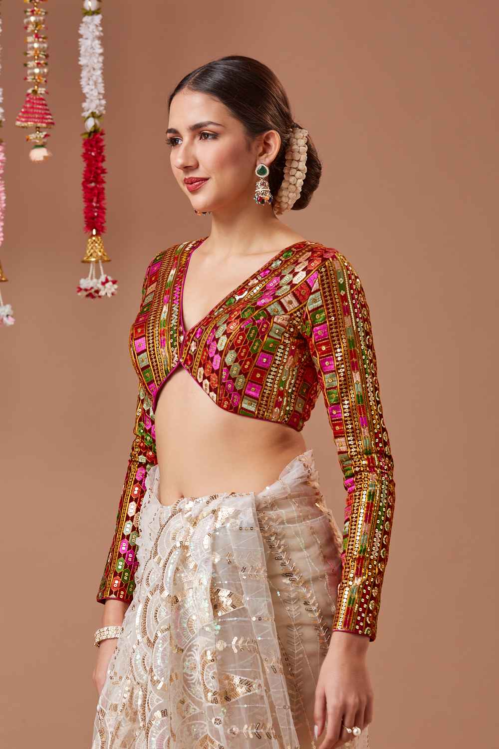Transform your saree look with our Blouse the ultimate blend of style and comfort. Made from soft and breathable Georgette it ensures a snug yet flexible fit. The intricate Embroidered make this blouse a wardrobe essential. Perfect for Festivewear it works beautifully with traditional or modern sarees alike. Team it with a silk saree, a bold necklace, and embellished sandals for a sophisticated look. Redefine your saree style with Blouse