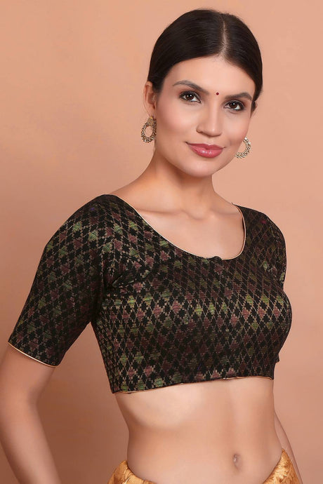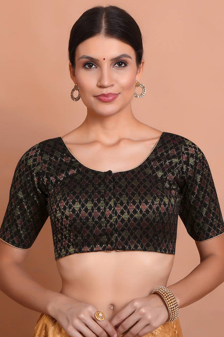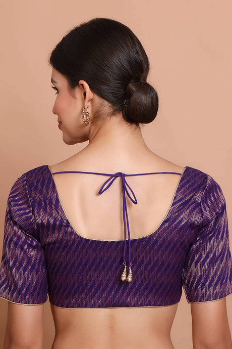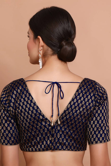 Navy Blue Woven Brocade Blouse