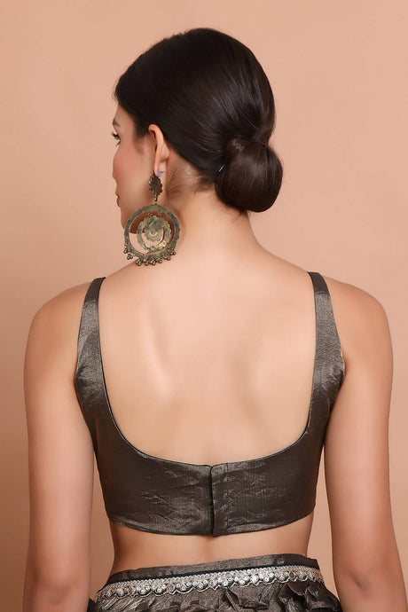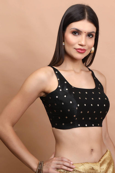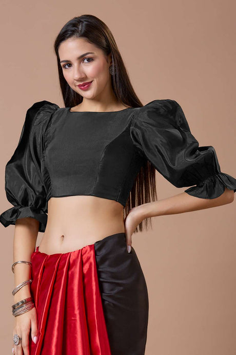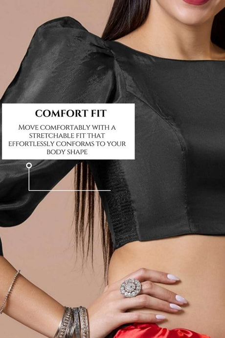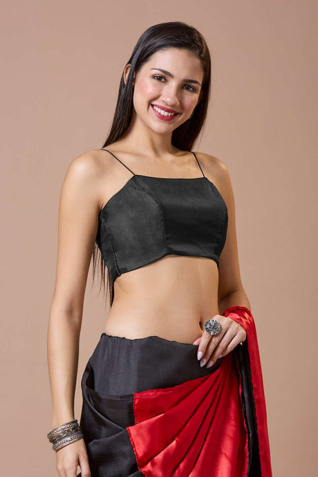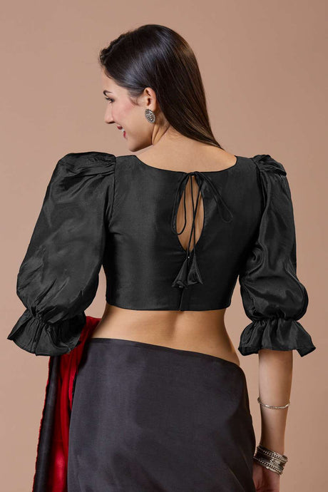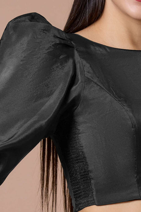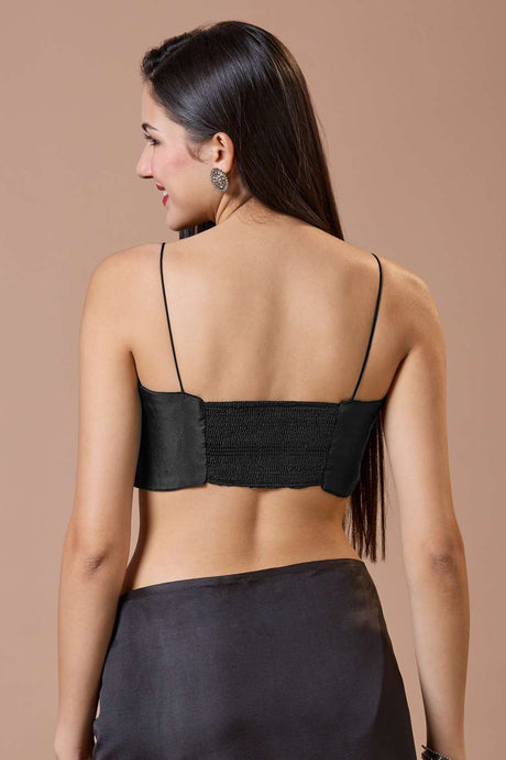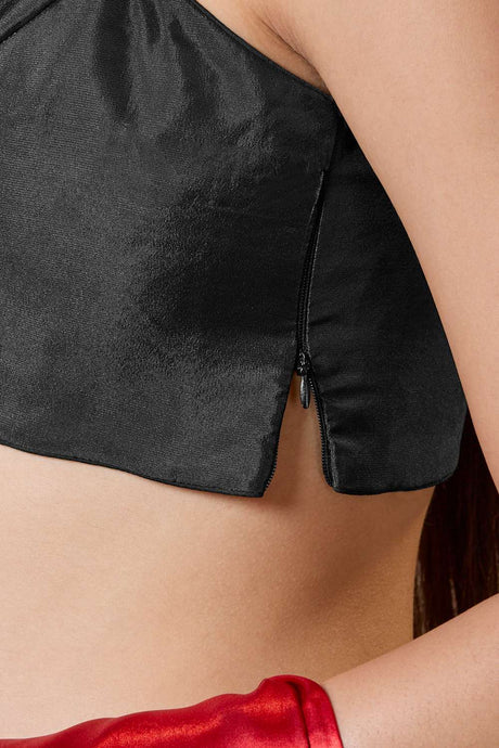 Black Solid Silk Square Neck Blouse
