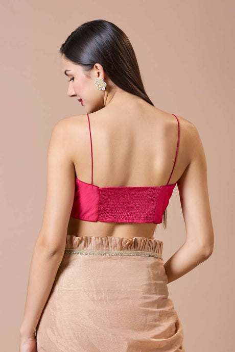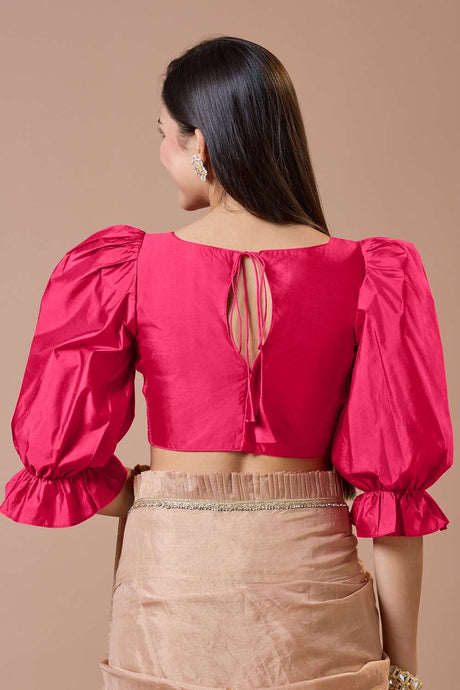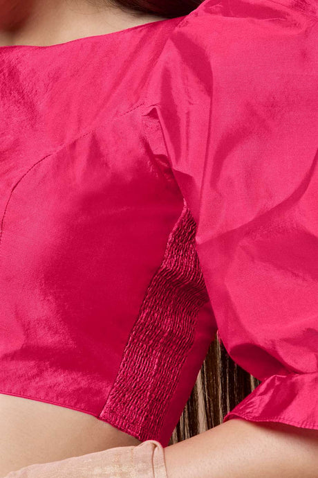 Pink Solid Silk Square Neck Blouse