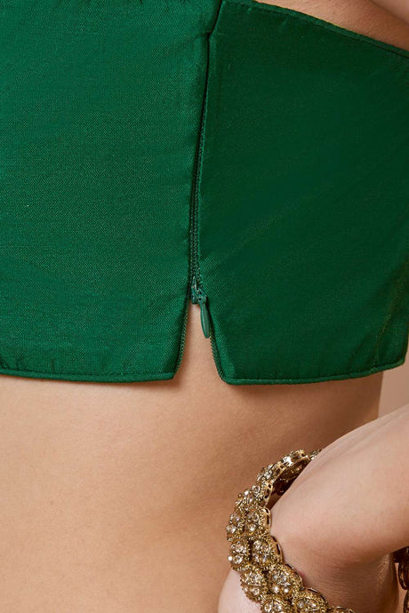 Green Solid Silk Square Neck Blouse