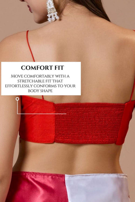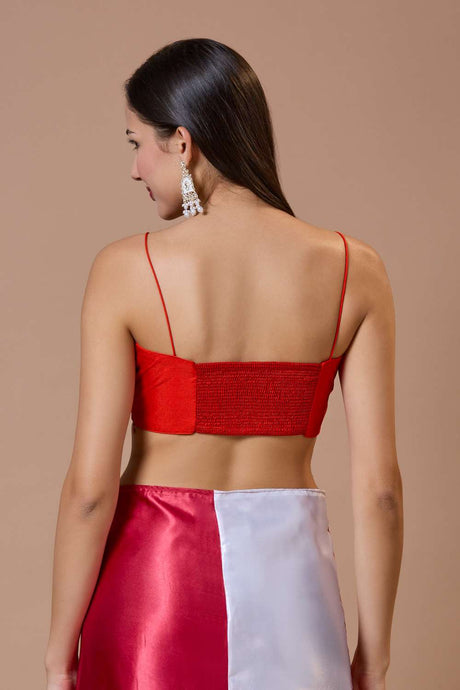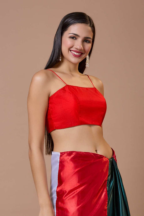 Red Solid Silk Square Neck Blouse
