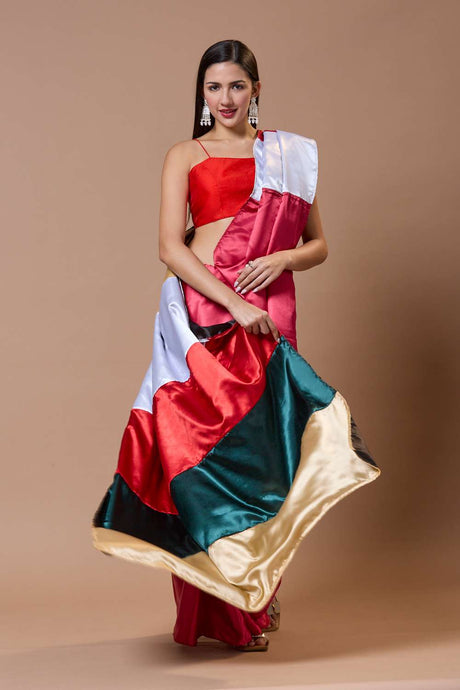 Red Solid Silk Collar Neck Blouse