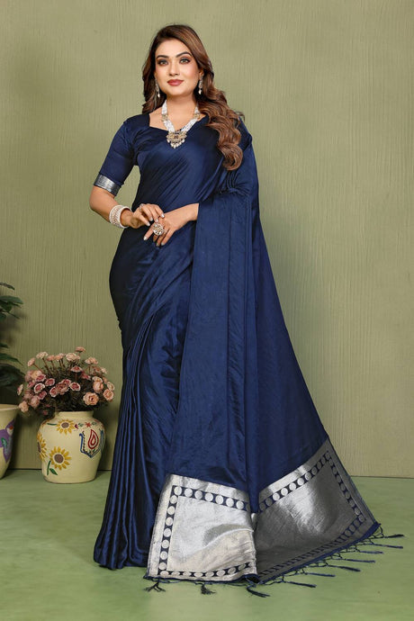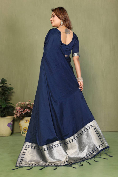 Navy Blue Woven Banarasi Silk Saree
