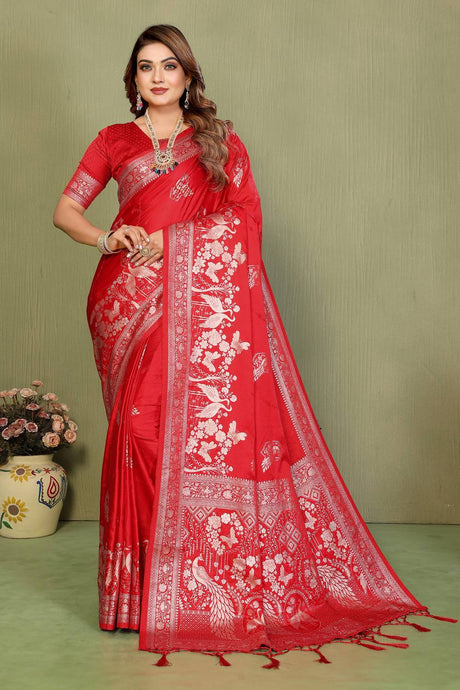 Magenta Woven Banarasi Silk Saree