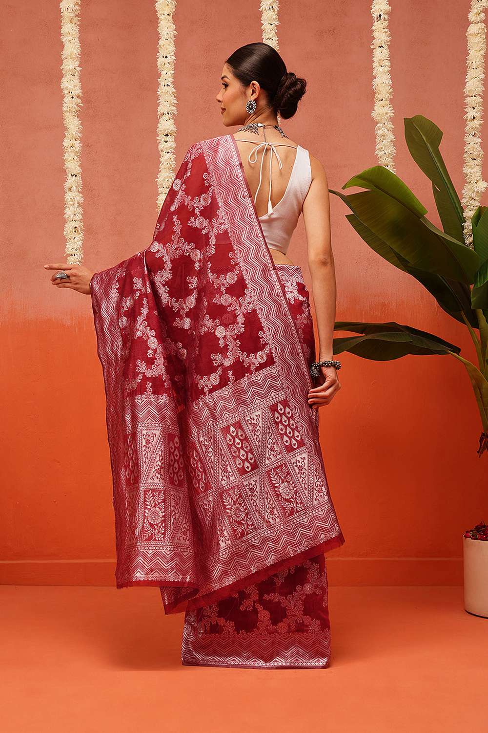 Elevate your wardrobe with our exquisite Saree, a masterpiece crafted to add timeless elegance to your style. Made from Cotton this saree offers a perfect mix of comfort and sophistication. Adorned with Woven it showcases intricate craftsmanship that speaks volumes of tradition and artistry. Perfect for Party this saree is a versatile addition to your collection, ensuring you stand out effortlessly. Pair it with elegant Jewelry, such as [for a glamorous look. Add Clutches or Potli Bags and complete the ensemble with Wedges & Heels , making it a perfect choice for any event. Make a statement and embrace the elegance of Saree today