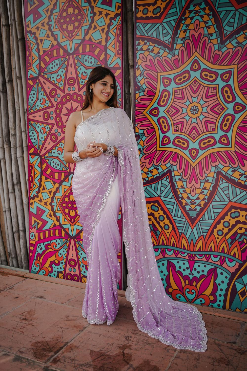 Elevate your wardrobe with our exquisite Saree a masterpiece crafted to add timeless elegance to your style. Made from Satin this saree offers a perfect mix of comfort and sophistication. Adorned with Sequin it showcases intricate craftsmanship that speaks volumes of tradition and artistry. Perfect for Party this saree is a versatile addition to your collection, ensuring you stand out effortlessly. Pair it with elegant Jewelry, for a glamorous look. Add Clutches or Potli Bags and complete the ensemble with Wedges & Heels , making it a perfect choice for any event. Make a statement and embrace the elegance of Saree today