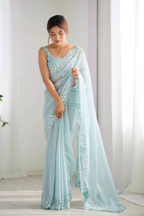Sky Blue Printed Georgette Saree