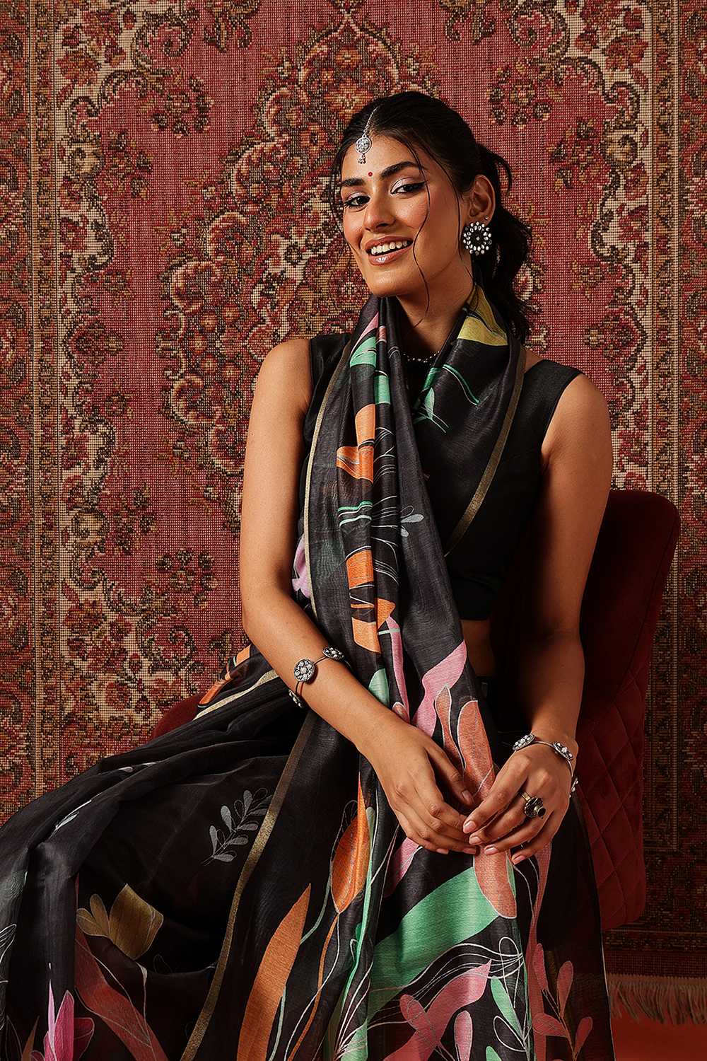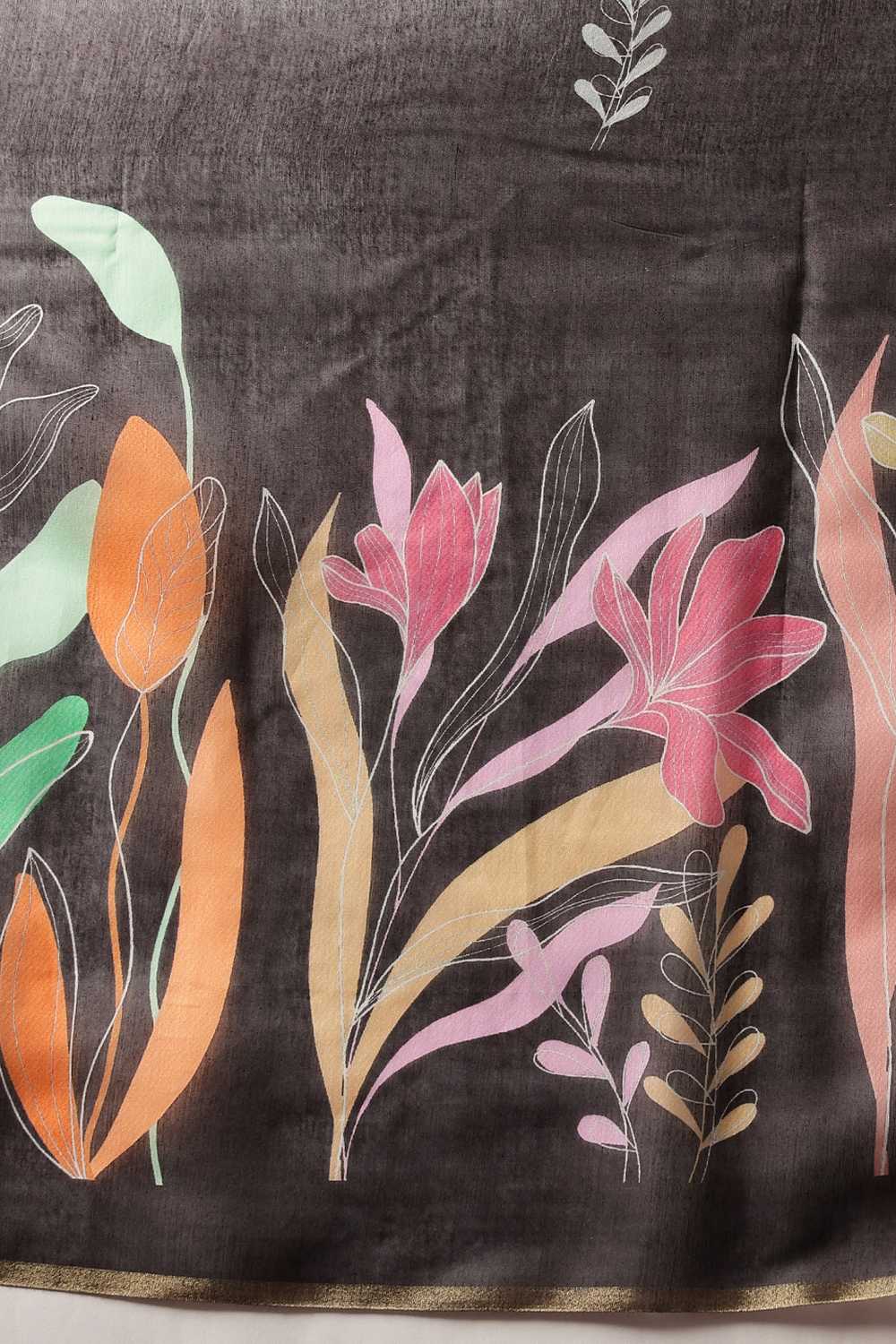 Black Floral Printed Cotton Blend Saree